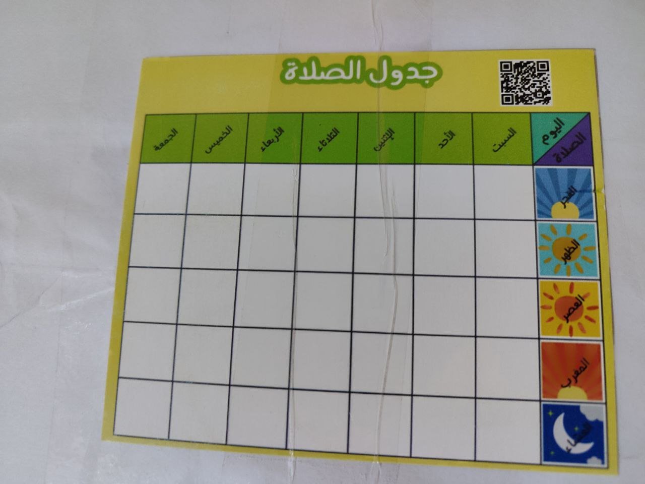 جدول متابعة الصلاة للاطفال و الكبار